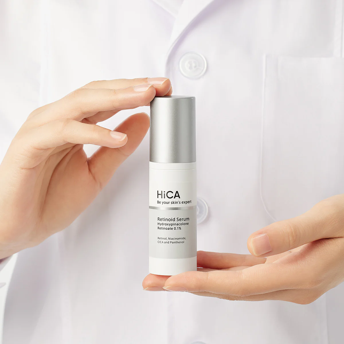 Naujos kartos retinoidų serumas, kuriame derinami R-Retinoatas (0.1%), Niacinamidas, Cica (Centella Asiatica) ir Pantenolis. Šie ingredientai veikia sinergiškai, kad atnaujintų, sustiprintų ir apsaugotų jūsų odą.